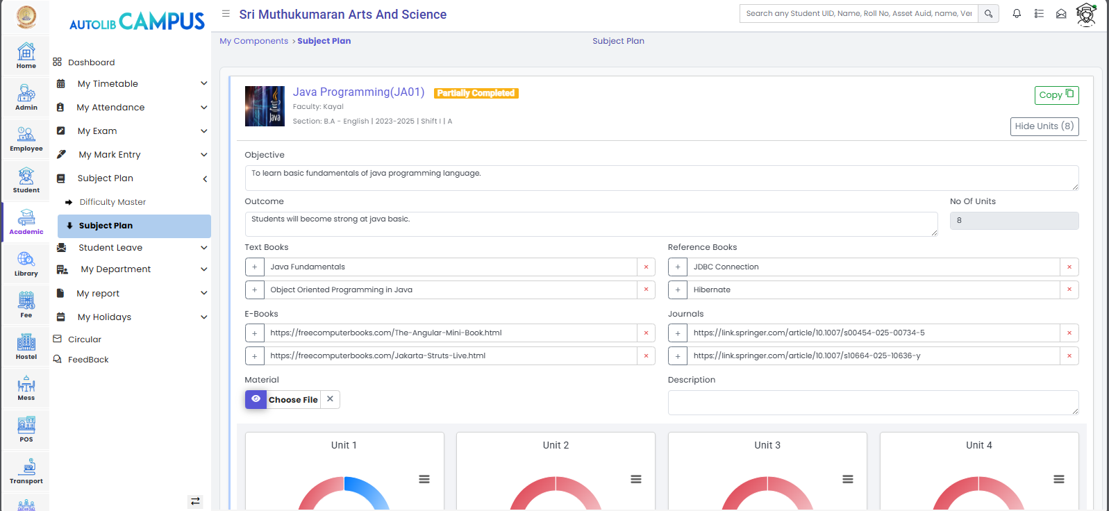 ICCMS is one of the software products designed and developed by AutoLib using the latest Spring Boot, Angular, and MariaDB technologies to automate the operations of various modern academic institutions—such as Engineering, Arts & Science, Education, Medical, Management, Pharmacy, and Polytechnic colleges. This web-enabled ERP software facilitates the planning, implementation, monitoring, control, and management of student entry and exit on campus through the “One Card One Campus” solution.